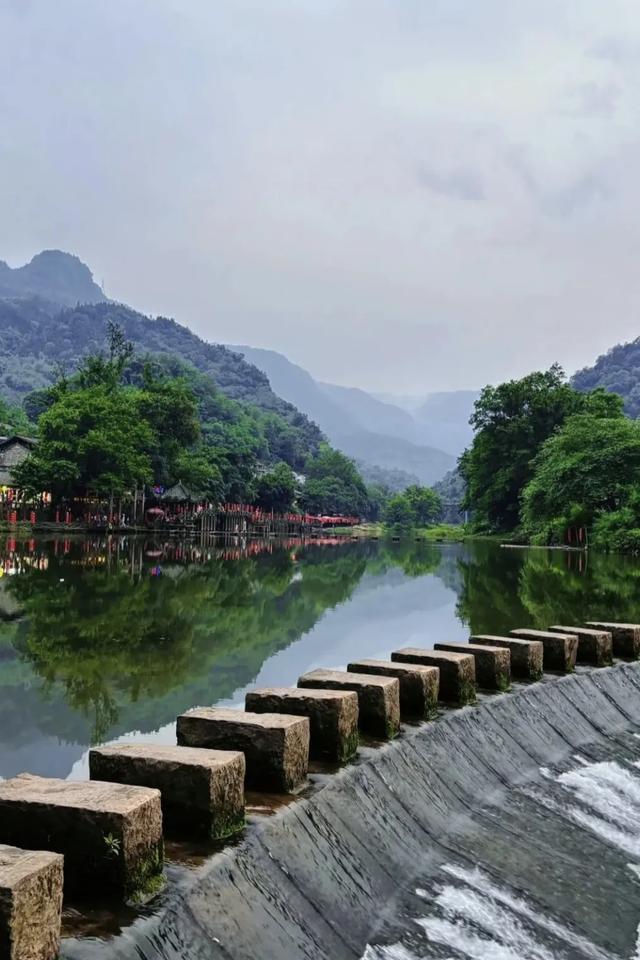 河里头那一长排石墩桥必须去走一遭!看着简单,走上去才有意思,脚下是水流流过,一步一步踩的稳当,好多人在上头摇摇晃晃地拍照,胆小的还要拉着手走呢,站到河中间回头看,整个古镇、吊脚楼、老榕树倒映在水里,那个景致,绝了!